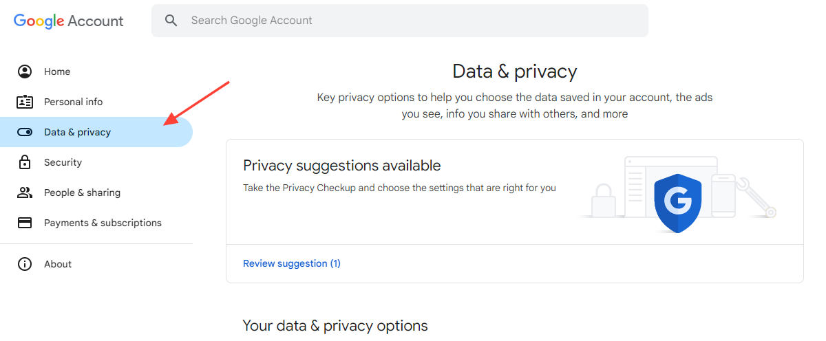 - On the left side of the page, click on "Data & privacy”.