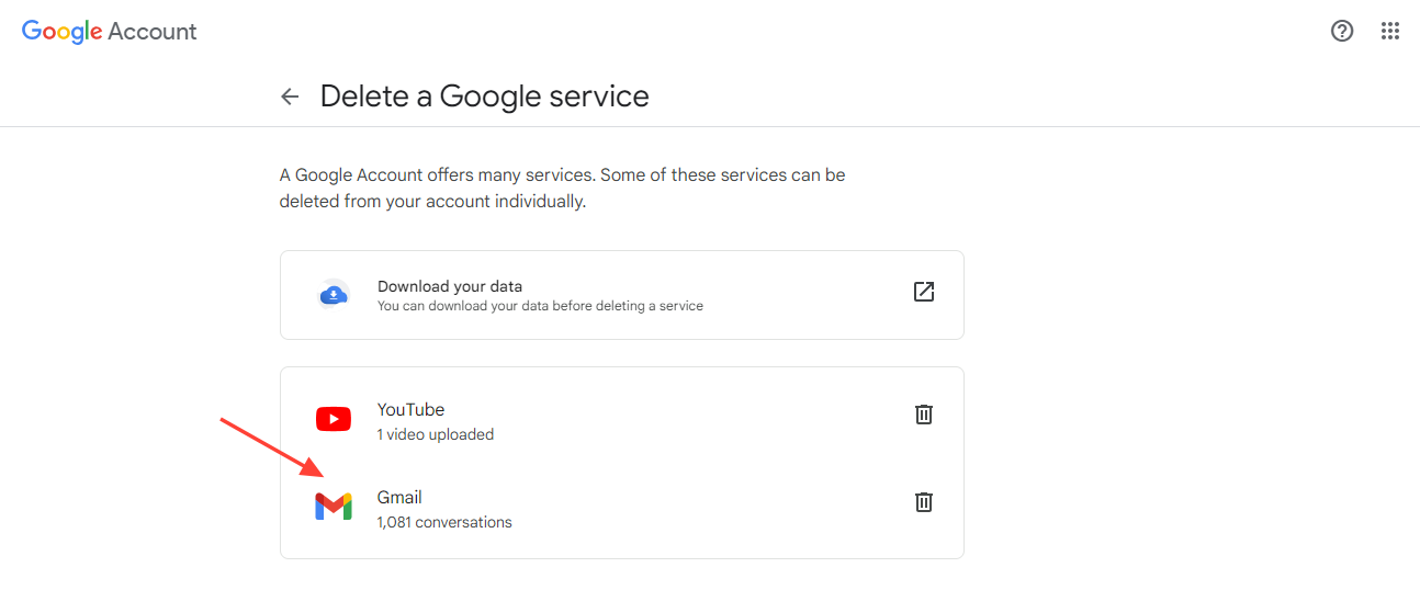 - Next to "Gmail," click the trash can button.