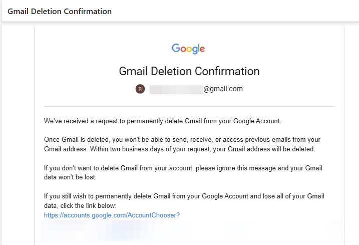 - Open the email from Google and click on the link to delete your account. When prompted, select “Yes, I want to delete my Gmail account” and then click “Delete Gmail” followed by “Done”.