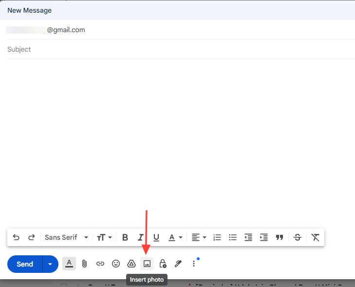 - Click on the "Insert image" option in the format bar at the bottom of the compose window.